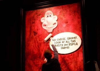 Dos activistas por los derechos de los animales han cubierto este martes un retrato del rey Carlos III con una...