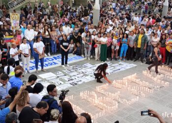 Decenas de ciudadanos acudieron este jueves a la plaza Los Palos Grandes, en Caracas, para participar en una vigilia en...