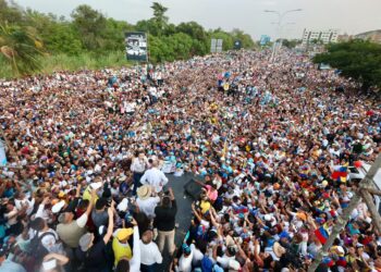 El candidato presidencial unitario, Edmundo González Urrutia, encabezó este miércoles, junto a la líder opositora María Corina Machado, un multitudinario...