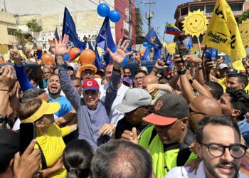 El candidato presidencial unitario, Edmundo González Urrutia, encabezó este sábado una caminata por Maiquetía, en el estado Vargas, junto a...