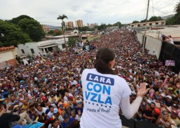 La líder opositora María Corina Machado encabezó este martes una multitudinaria concentración en la parroquia Juan de Villegas, al oeste...