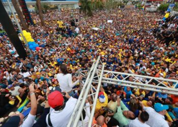 La líder opositora María Corina Machado encabezó este jueves una multitudinaria concentración que desbordó la avenida Bella Vista de Maracaibo,...