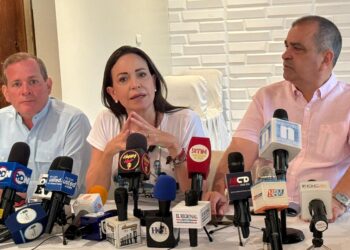 La líder opositora María Corina Machado ofreció este viernes una rueda de prensa desde el estado Zulia, donde llamó a...