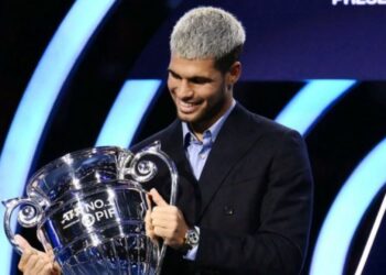 Carlos Alcaraz recibe el trofeo de número 1 de la ATP del año 2025