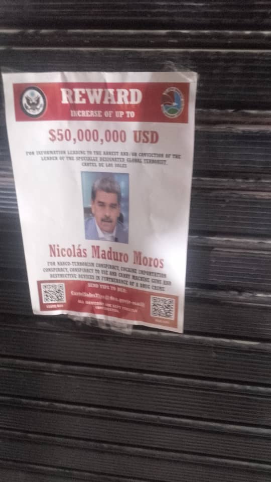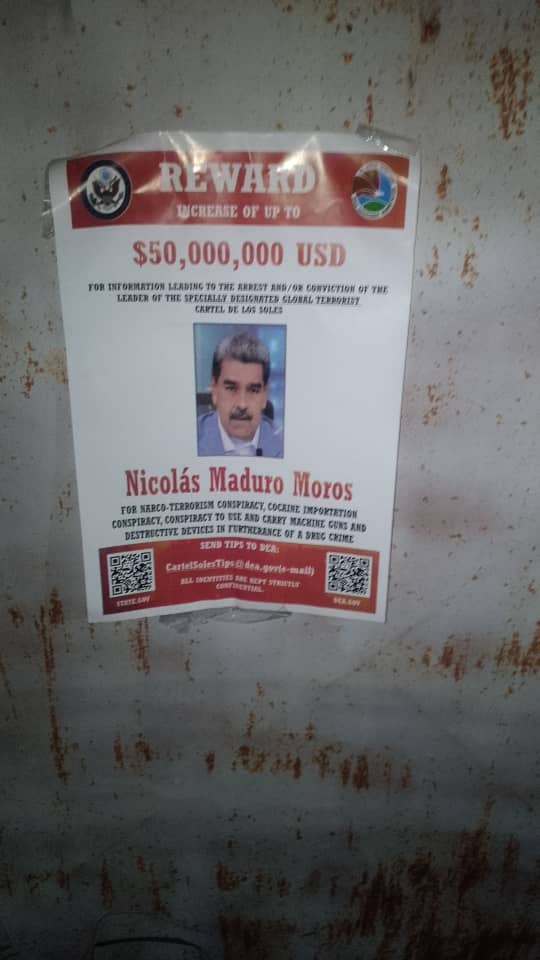 ` Afiches con la recompensa por la captura de Maduro aparecieron en Caracas, San Cristóbal, Vargas, Guárico y Lara - Monitoreamos