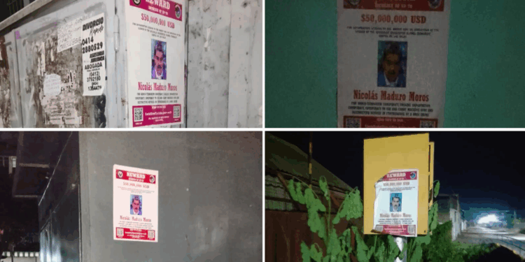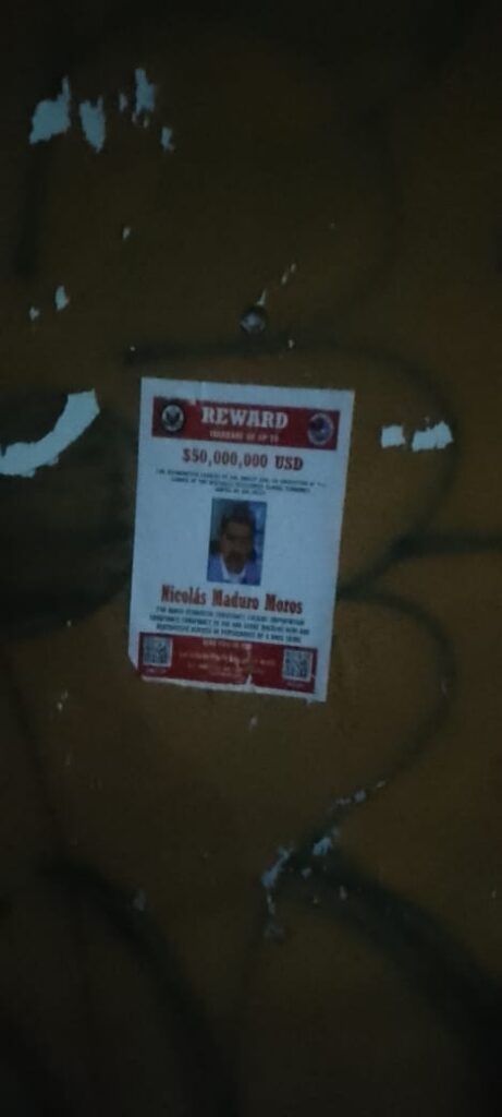 La madrugada de este jueves 2 de octubre, diversos sectores de Caracas, San Cristóbal, Vargas, Guárico y Lara amanecieron empapelados con carteles alusivos a la recompensa de 50 millones de dólares contra Nicolás Maduro, ofrecida por el gobierno de Estados Unidos.