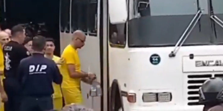 Los prisioneros fueron sacados esposados, vestidos con ropa amarilla y subidos a un autobús, mientras eran vigilados por agentes con uniformes de la División de Investigaciones Penales (DIP) de de la Policía Nacional Bolivariana (PNB).