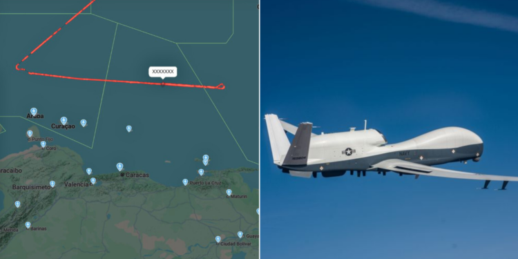 La madrugada de este martes, un dron de la Marina de Estados Unidos, modelo MQ-4C Triton, identificado como 169804 BLKCAT6, ingresó al espacio aéreo de información de vuelo (FIR) de Maiquetía, realizando maniobras de reconocimiento frente a la costa venezolana en el mar Caribe.