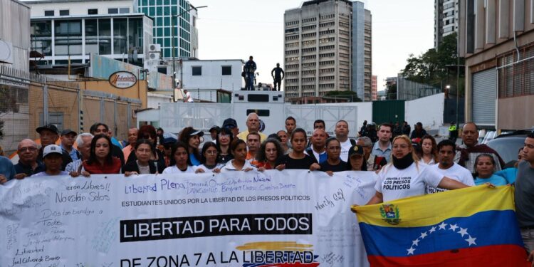 Familiares de presos políticos venezolanos cumplieron este miércoles su décimocuarto día consecutivo de protesta frente a la sede policial conocida como Zona 7, en Caracas, donde permanecen en vigilia para exigir la liberación de sus seres queridos. La manifestación se mantiene a pesar del hostigamiento policial y del despliegue de equipos antimotines instalados por la Policía Nacional Bolivariana (PNB), junto con nuevas cámaras de vigilancia en el lugar.