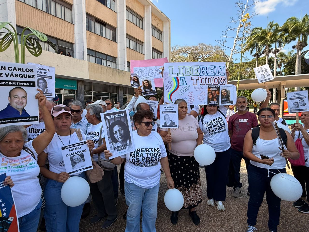 Este jueves 22 de enero, habitantes de Barquisimeto, en el estado Lara, realizaron una protesta pacífica en la Plaza de la Justicia, frente al Edificio Nacional, para exigir la liberación de todos los presos políticos en Venezuela.