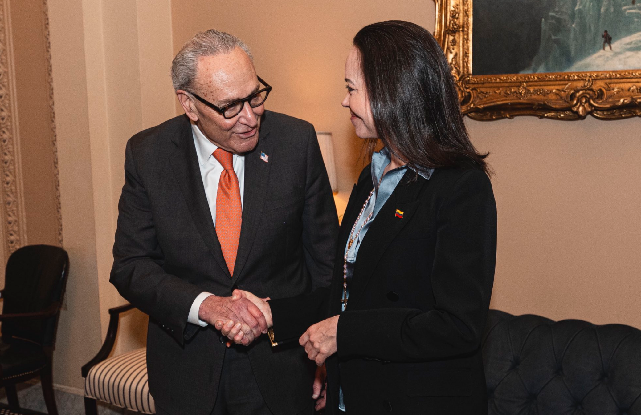 El líder de la bancada demócrata en el Senado de Estados Unidos, Chuck Schumer, sostuvo una reunión con la líder venezolana María Corina Machado para conversar sobre el apoyo de Washington a la causa democrática en Venezuela.