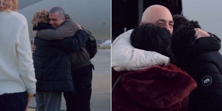 Meloni, acompañada del ministro de Asuntos Exteriores de Italia, Antonio Tajani, saludó a sus compatriotas en una sala del aeropuerto, mientras que previamente al pie de la escalerilla del vuelo de Estado enviado por el Gobierno italiano se encontraban la madre de Trentini y la mujer e hija de Burlò.