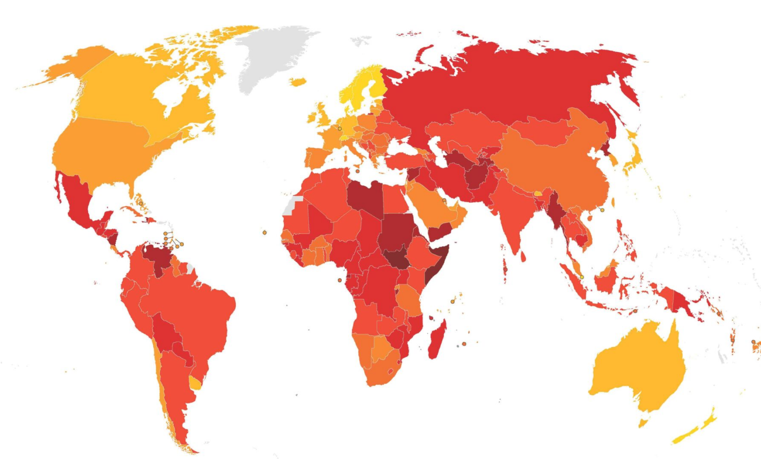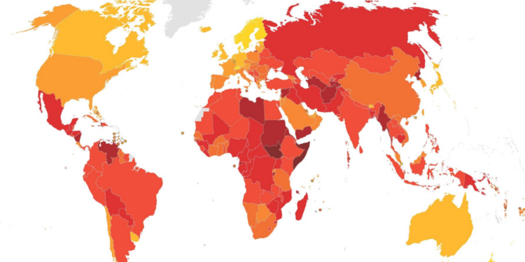 Solo cinco países superan los 80 puntos, frente a los 12 de hace una década. En total, 122 de los 182 países evaluados obtuvieron menos de 50 puntos.