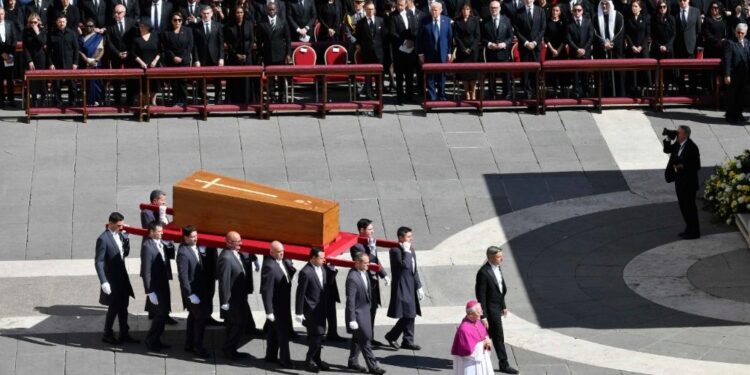 El funeral del papa Francisco comenzó poco después de las 10.00 hora local (8.00 GMT) con la marcha del féretro a hombros de los ‘sediarios’ seguido en procesión los cardenales concelebrantes desde la basílica de San Pedro del Vaticano hasta el sagrado de la plaza.
