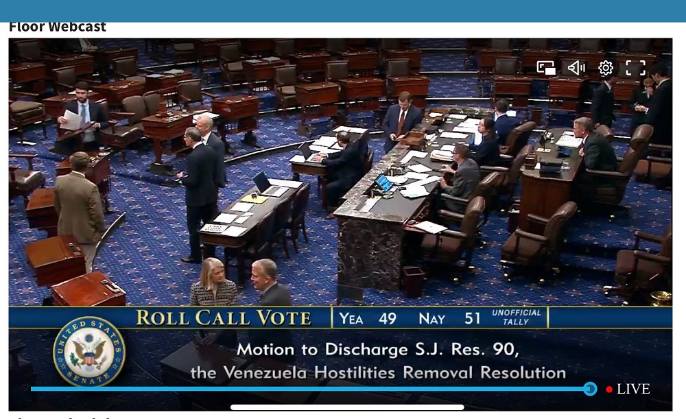 ` Fracasó en el Senado de EE.UU. el proyecto que buscaba bloquear cualquier ataque militar contra el régimen de Maduro - Monitoreamos