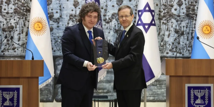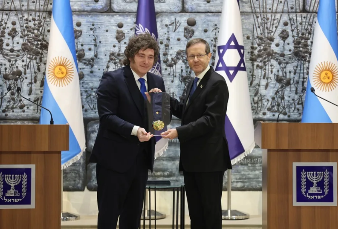 El presidente de Argentina, Javier Milei, recibió hoy la Medalla Presidencial del Honor de Israel, de manos de su homólogo israelí, Isaac Herzog, en una ceremonia en la que este último destacó que el galardón es un símbolo de gratitud por la «claridad moral» del argentino, así como de la «humanidad, valores y visión compartida por un futuro mejor» de ambas naciones.