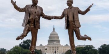 Mundo Instalan esculturas de Trump y Jeffrey Epstein frente al Capitolio en Washington DC 24 septiembre 2025