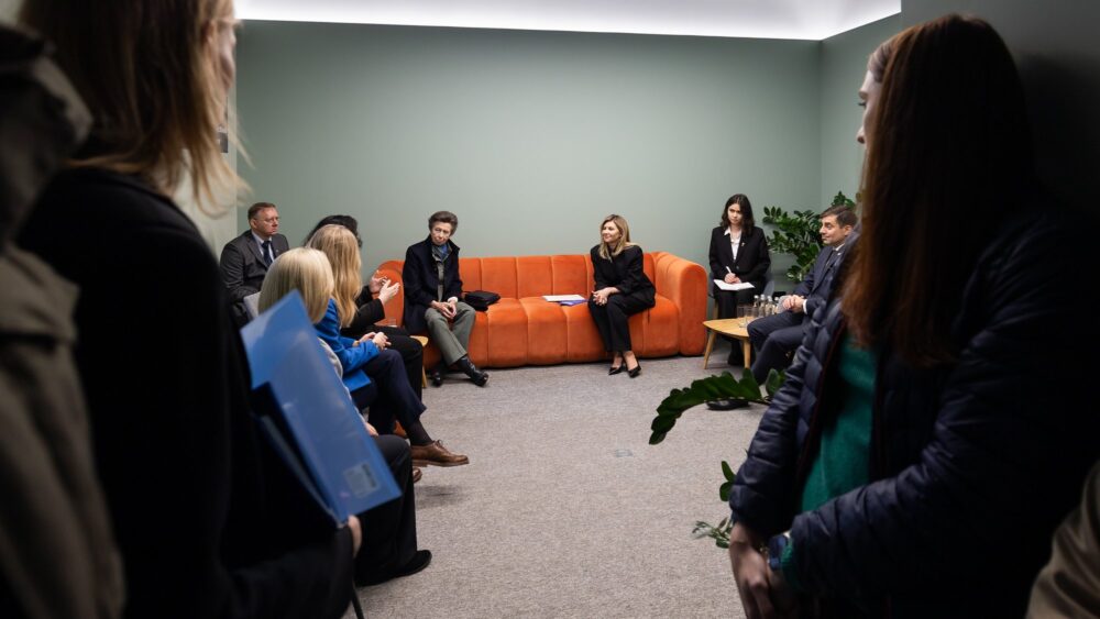 La princesa, de 75 años, visitó durante su viaje el Centro de Protección de Derechos del Niño, donde habló con familias y niños repatriados desde Rusia y territorios ocupados, y recorrió la Catedral de Santa Sofía, señalan los medios británicos.
