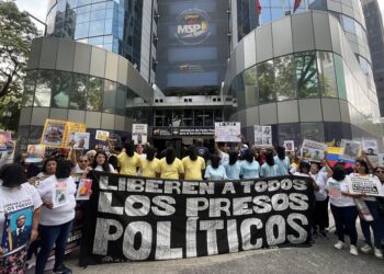Familiares de presos políticos realizaron una protesta simbólica este jueves a las afueras del Ministerio Penitenciario, en Caracas, para denunciar...