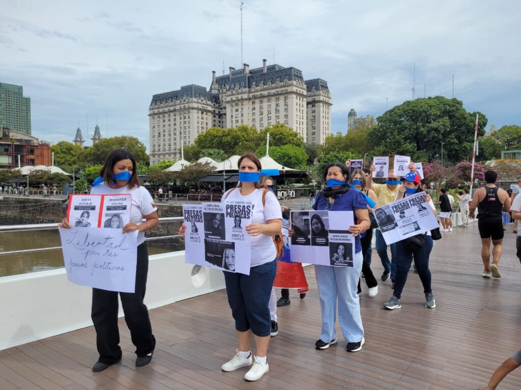“Nos encontramos acá desde el Puente de la Mujer en conmemoración y por la lucha de todas esas mujeres presas venezolanas, pero también es importante mencionar a un preso político argentino como lo es Germán Giuliani. Le pedimos al régimen de Delcy Rodríguez por la libertad de cada uno de los venezolanos y extranjeros que hoy se encuentran detenidos”, afirmó.