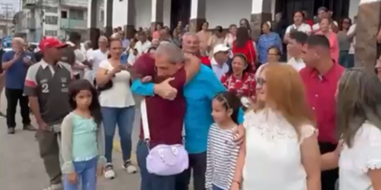 El dirigente político Biagio Pilieri regresó este domingo a su natal Chivacoa, donde fue recibido por decenas de personas que se congregaron para darle la bienvenida tras casi 17 meses de detención arbitraria. Su llegada estuvo marcada por muestras de afecto, aplausos y abrazos de vecinos, feligreses y seguidores que lo esperaban a las puertas del templo local.