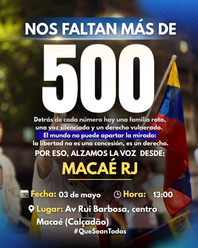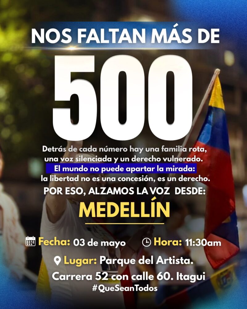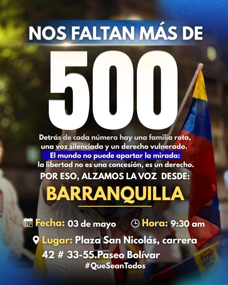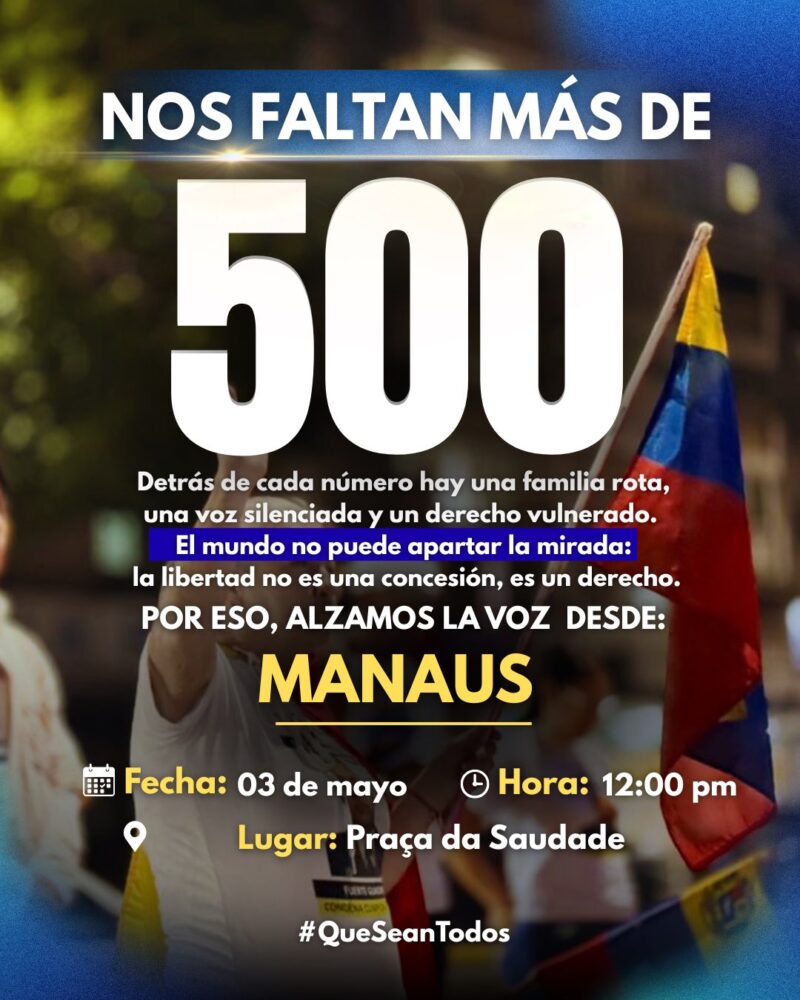 ` Comando Con Vzla convoca concentraciones el 3 de mayo en Latinoamérica por la libertad de más de 500 presos políticos - Monitoreamos