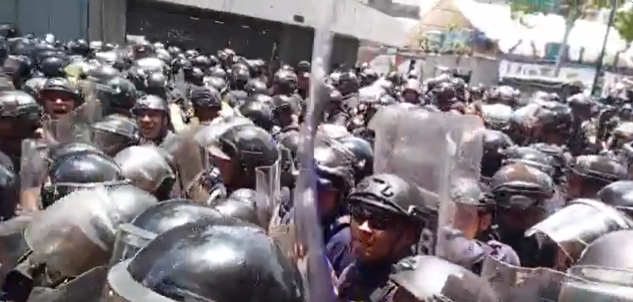 12:45 pm | Un funcionario de la PNB es captado mientras agrede con su escudo a nuestro fotógrafo Sergio González.