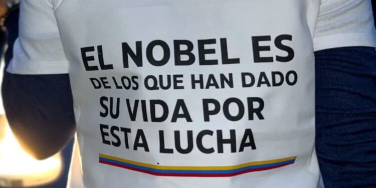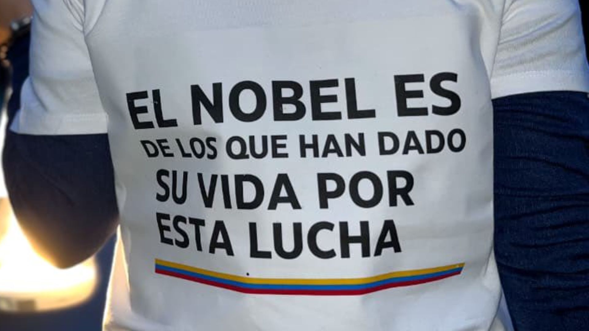 Con banderas y pancartas, los participantes recordaron que el galardón no es solo un reconocimiento a la líder opositora, sino un homenaje al pueblo venezolano que ha resistido con valentía frente a la represión y que mantiene viva la esperanza de una transición democrática.