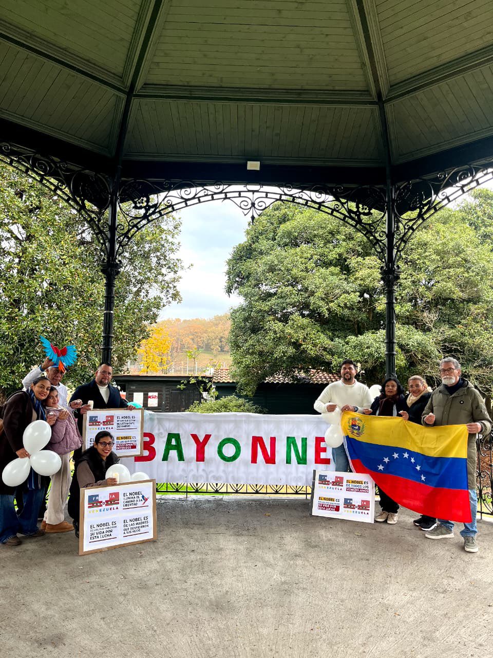 Los venezolanos en Bayonne y Antibes, en Francia, se unieron este sábado al llamado por la paz y la libertad en el país, al celebrar el Premio Nobel de la Paz 2025, que fue otorgado a la líder opositora María Corina Machado.