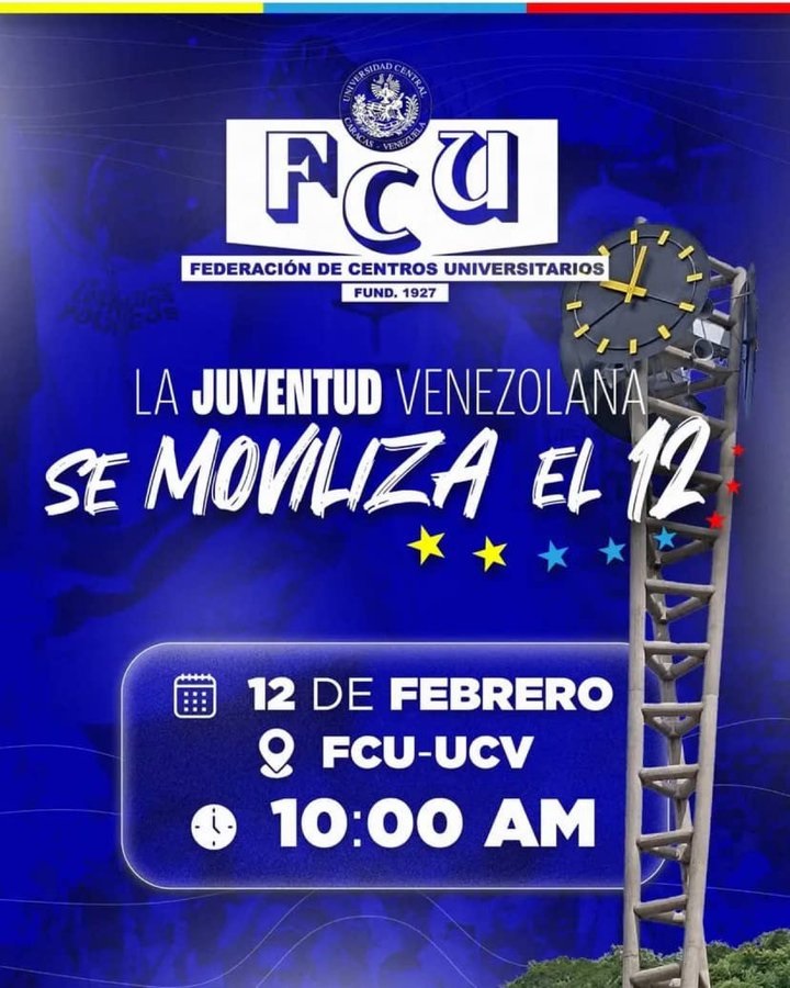 Este martes el Movimiento Estudiantil de la Universidad Central de Venezuela (UCV) convocó a toda la juventud y a la sociedad civil a movilizarse en Caracas este 12 de febrero a las 10 de la mañana, con motivo de la celebración del Día de la Juventud.
