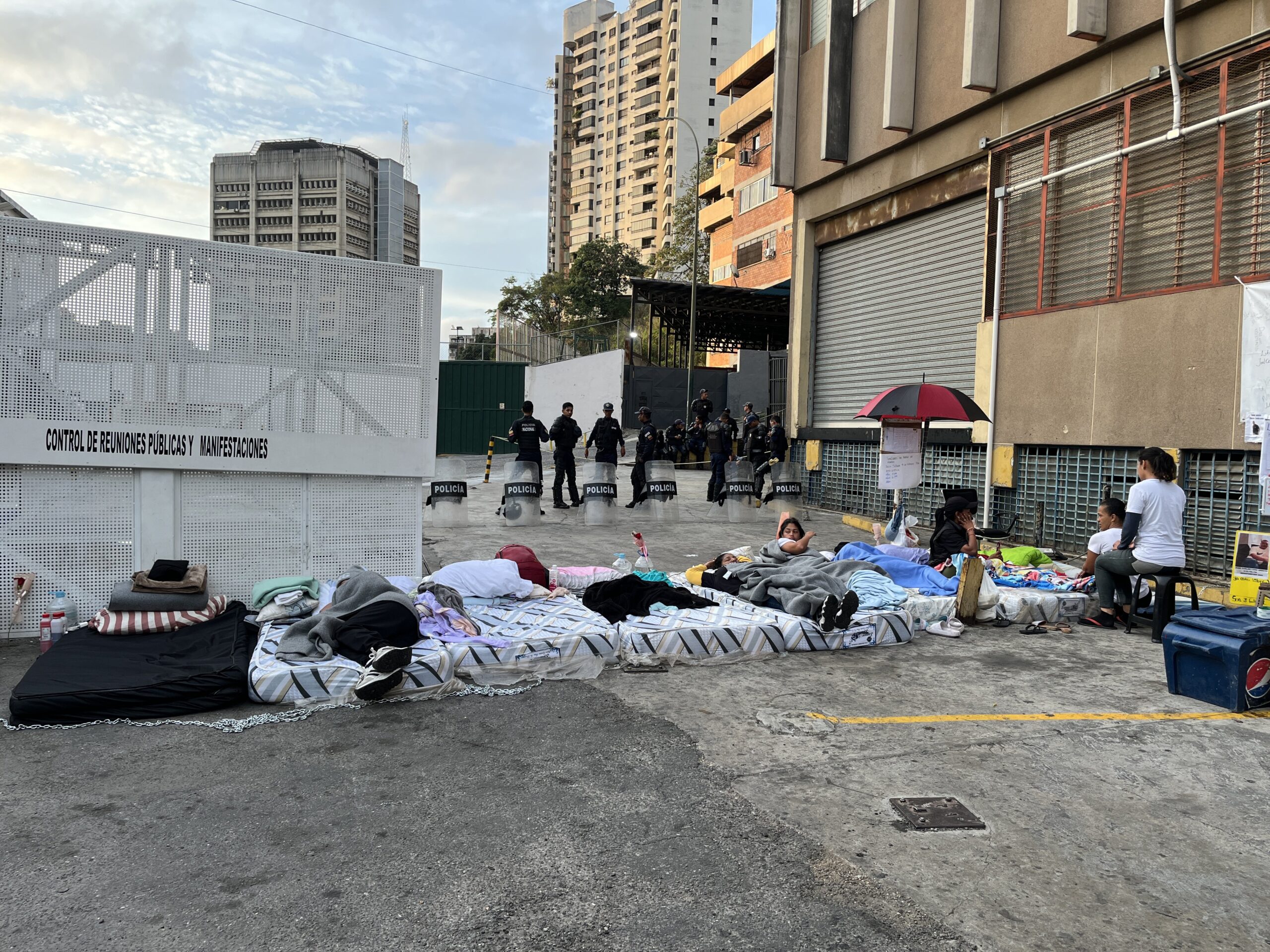 Un grupo de familiares de presos políticos en Venezuela cumplió este domingo 24 horas en huelga de hambre fuera de un comando policial en Caracas, donde el sábado 17 personas fueron excarceladas, entre ellas dirigentes sindicales y dos jóvenes con trastorno del espectro autista.