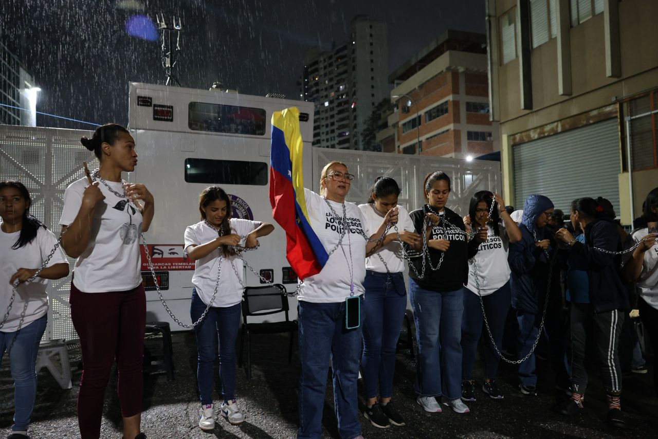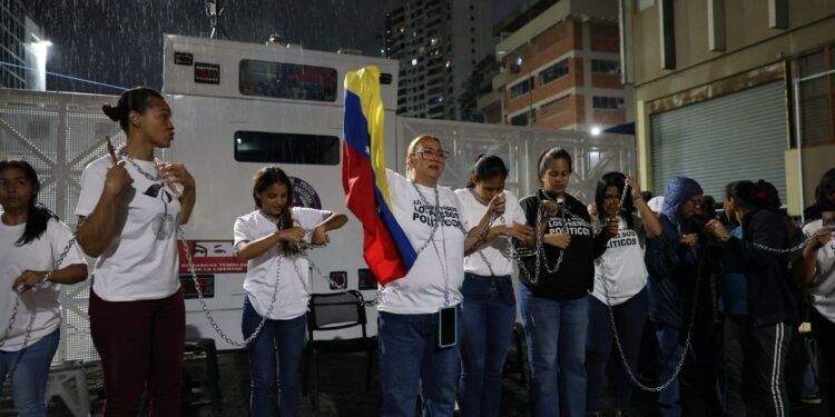Luego de que la encargada del régimen, Delcy Rodríguez, anunciara el envío a la Asamblea Nacional chavista de un proyecto de “ley de amnistía general”, familiares de presos políticos se encadenaron este viernes en la entrada de la Zona 7 de la Policía Nacional Bolivariana (PNB), en Boleíta, para exigir la liberación inmediata de todas las personas detenidas arbitrariamente.