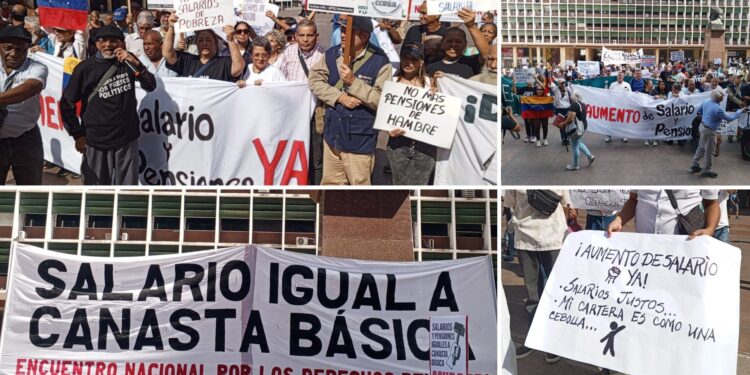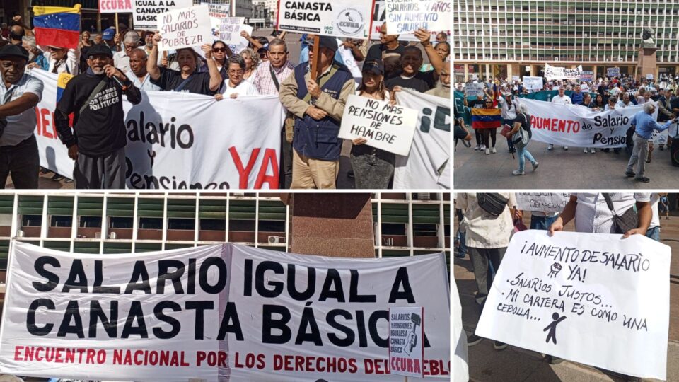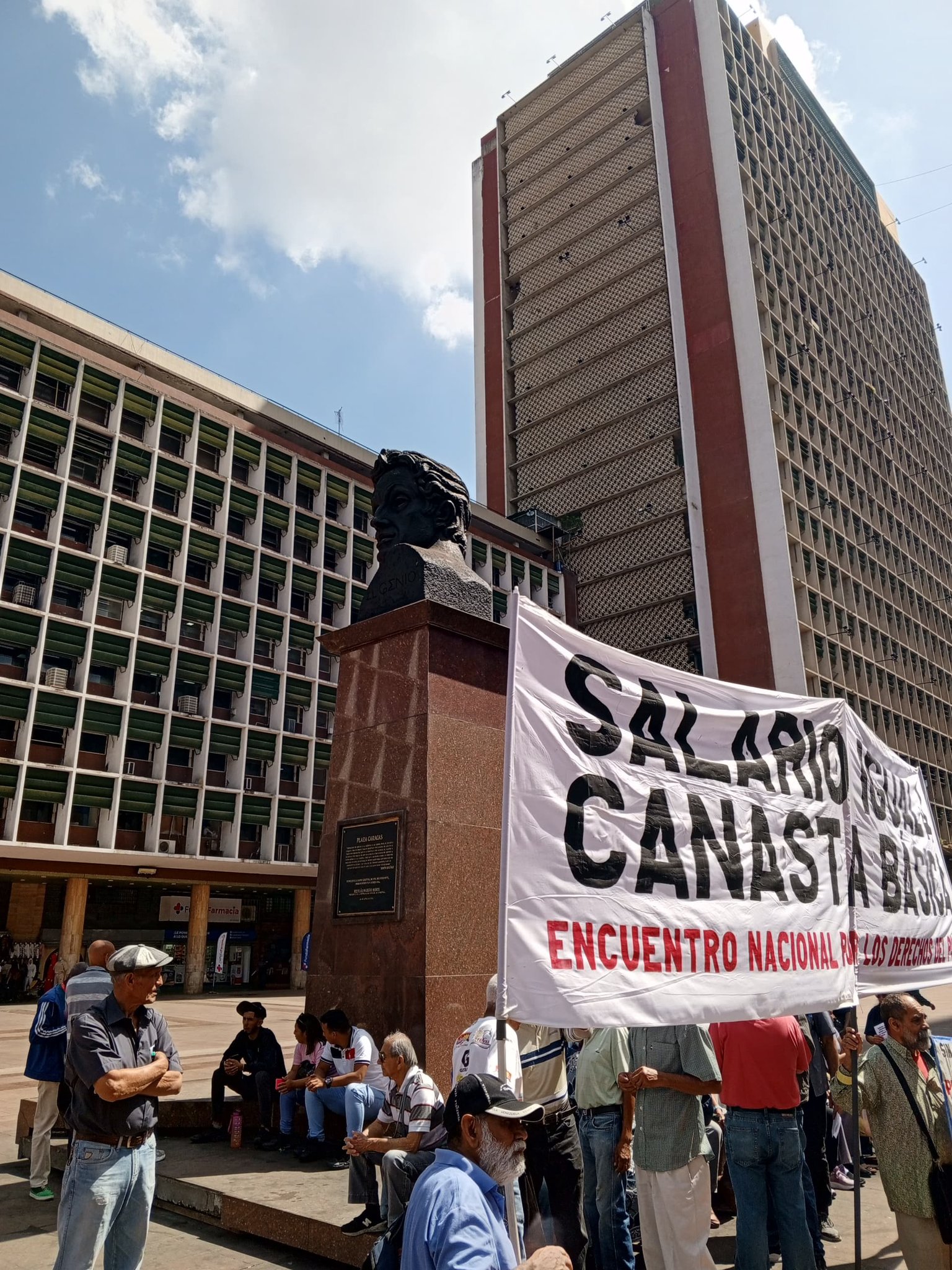 Entre las exigencias, leídas por Figueroa ante los manifestantes, priorizaron el establecimiento de un salario y pensión «mínimos» que cubran la canasta básica, así como la eliminación de los bonos para «convertirlos en salario real, con impactos de prestaciones y beneficios» laborales.