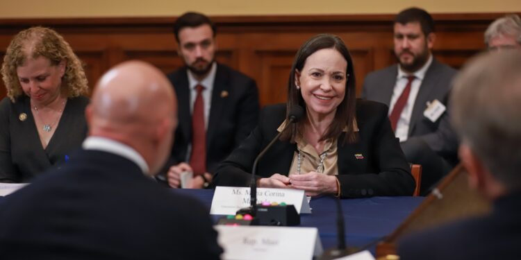Además, María Corina pidió el apoyo de los congresistas para lograr que todos los presos políticos sean liberados —verdaderamente liberados— y no continúen bajo amenazas.