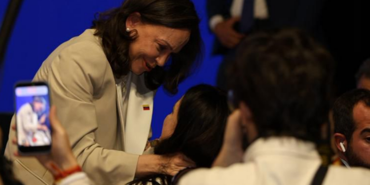 María Corina se acercó a su compañera y se abrazaron, entre aplausos de los presentes. Tras el emotivo reencuentro, la líder opositora retomó la palabra visiblemente conmovida.