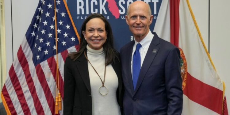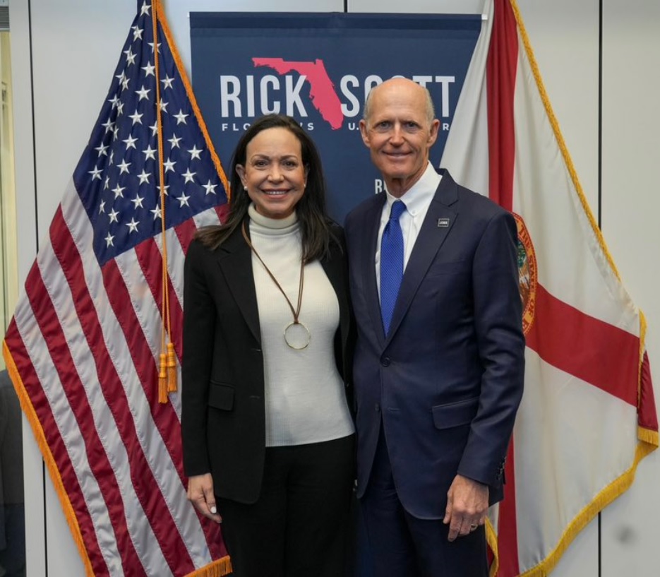 El senador republicano, Rick Scott, sostuvo este jueves una reunión con la líder venezolana y Premio Nóbel de la Paz, María Corina Machado, la cual calificó de «estupenda» y en la que le reiteró su apoyo y lucha por la libertad de Venezuela y de todos los presos políticos en el país.