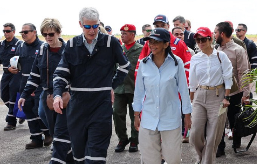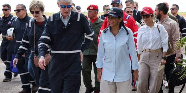 Este jueves el secretario de Energía de Estados Unidos, Christopher Wright y la encargada del régimen chavista, Delcy Rodríguez, junto a la encargada de negocios de la embajada de EEUU, Laura Dogu, visitaron este jueves la sede de Petroindependencia en la Faja Petrolífera del Orinoco, como parte del recorrido contemplado en el acuerdo energético entre ambas naciones.