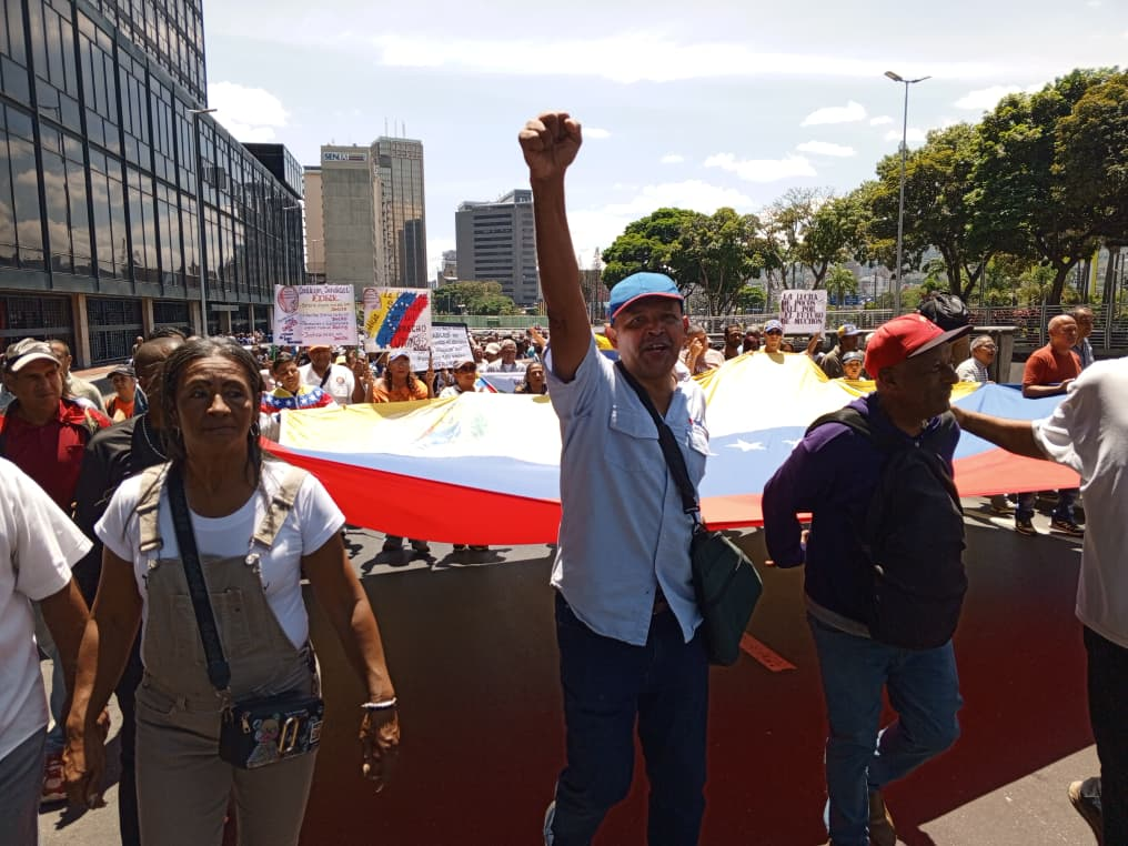 Al llegar a las inmediaciones de Plaza Venezuela, los participantes reiteraron sus exigencias de mejoras en los ingresos, afectados por el prolongado estancamiento del salario mínimo, que permanece sin cambios desde 2022.